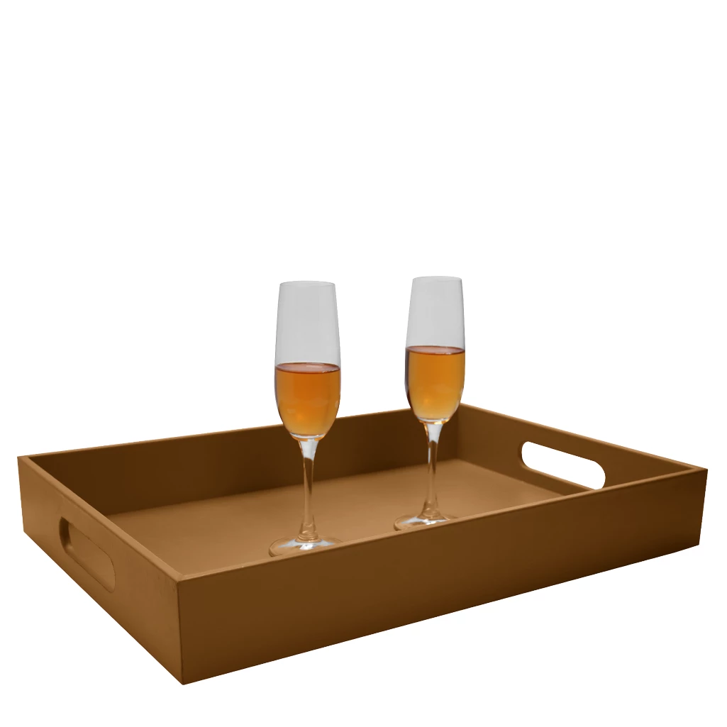 Vassoio completamente in pelle, ossatura in legno con manico per portarlo più facilmente Per le persone che sanno ricevere i loro invitati con eleganza. Articolo venduto senza i bicchieri.