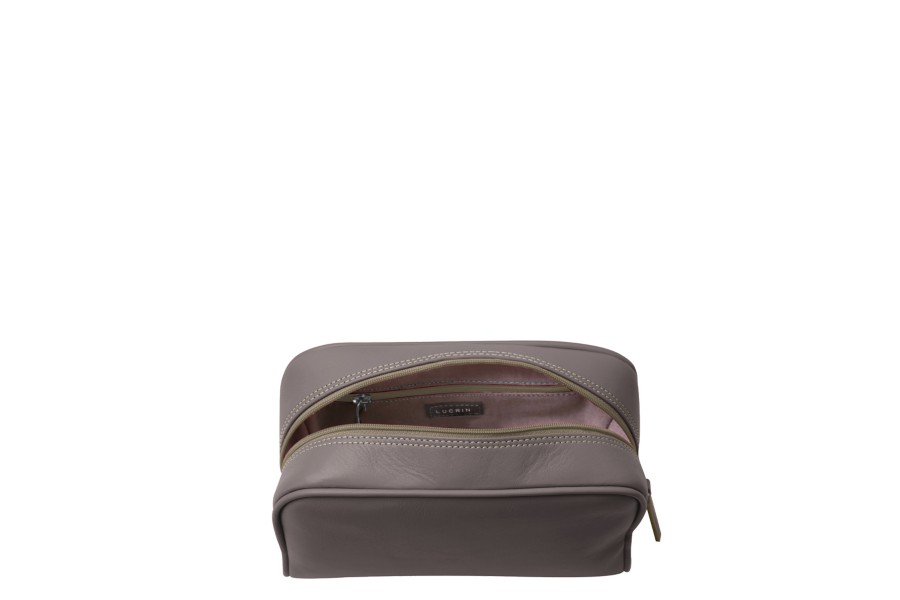 Trousse da toilette (25.5 x 15 x 10 cm) - Taupe chiaro - Pelle Liscia