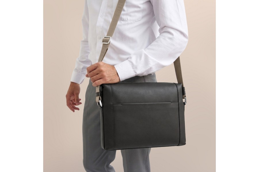 Con il suo design unisex, questa messenger dal formato compatto è bella e funzionale. La forma originale e le curve sinuose, insieme alla zip in metallo e ai raffinati accessori incisi, fanno di questa borsa un vero capolavoro di pelletteria. L’interno è rivestito in cotone pregiato e ospita scomparti per penne e smartphone, oltre a una tasca piatta con zip per gli oggetti indispensabili. Per un tocco unico, personalizza la borsa messenger con una bella incisione.