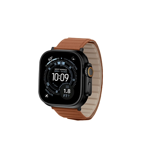 Realizzato in pelle d’alta gamma, offre una vestibilità sicura e confortevole per tutto il giorno avvolgendosi al polso grazie alle calamite. Gli adattatori neri si abbinano con armonia all’Apple Watch Ultra donandogli un tocco di sobria eleganza.