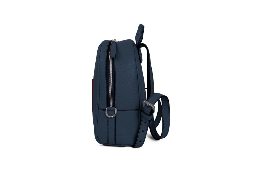 Zaino mini - Blu Navy-Bianco - Pelle Ruvida