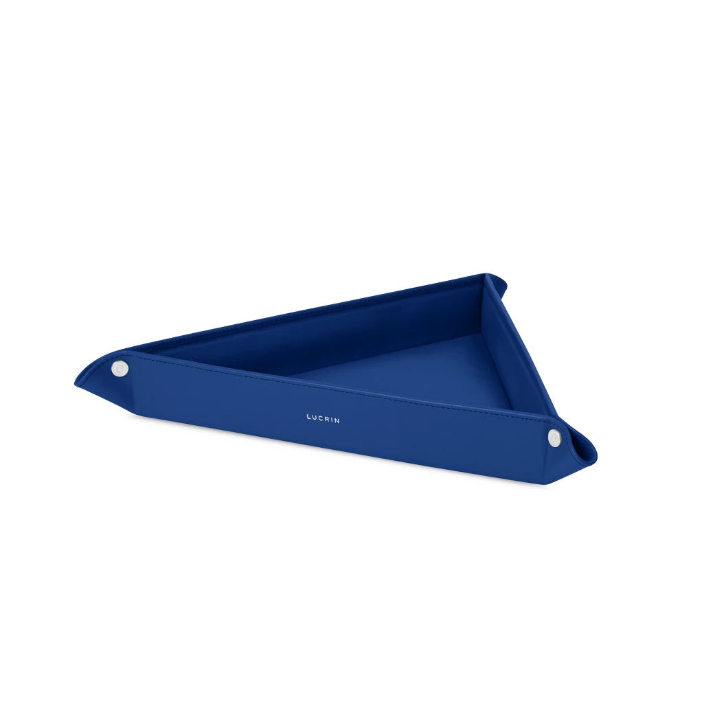Scopri questo svuotatasche dalla forma esclusiva realizzato interamente in pelle e rifinito con rivetti argentati, per un tocco moderno ed elegante. Funzionale e raffinato, questo portaoggetti triangolare è perfetto per riporre i piccoli oggetti di uso quotidiano in un unico posto. Posizionalo in camera o in ingresso e svuota al suo interno il contenuto delle tue tasche quando entri ed esci di casa. Disponibile in una miriade di colori, lo svuotatasche di design di LUCRIN Geneva è un grazioso contenitore che emette un segnale acustico per aiutarti a ricordare se hai riposto o meno le chiavi. Scegli la tonalità della pelle e le cuciture a contrasto per creare un accessorio che si integra alla perfezione in un ambiente contemporaneo e minimalista. Personalizzalo con un'incisione per distinguerlo da altri svuotatasche o per fare un regalo esclusivo.