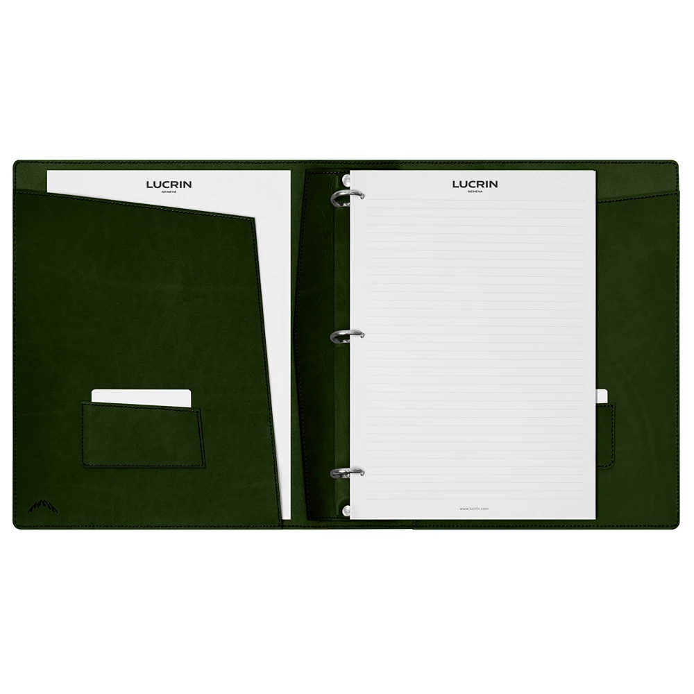 Scoprite l’Highland Flex Raccoglitore US Letter (3 anelli), realizzato in pelle pieno fiore della Alpine Collection, pensato per accompagnarvi nel tempo. Ideale per professionisti, consulenti, dirigenti e studenti che lavorano in formato US Letter, mantiene report, contratti e presentazioni perfettamente ordinati, senza pieghe né ritagli. Il meccanismo a 3 anelli è compatibile con inserti standard US Letter, mentre due tasche interne piatte custodiscono i fogli sciolti tra riunioni o lezioni. Con il tempo, la pelle sviluppa una patina naturale che rende ogni pezzo sempre più personale. Scegliete il colore, abbinate la cucitura e aggiungete le vostre iniziali per creare un raccoglitore in pelle davvero vostro. Rendilo unico.