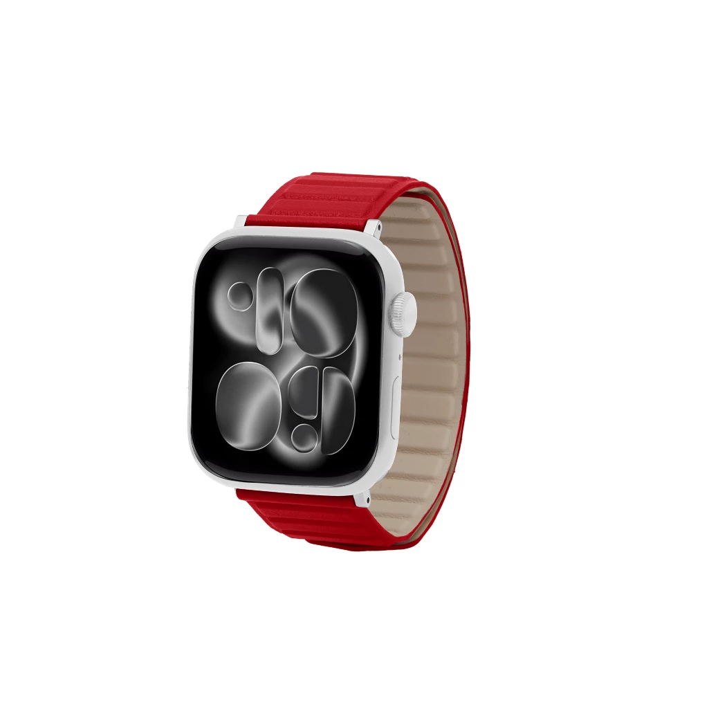 Cinturino magnetico - Apple Watch 42 mm - Argento - Rosso - Pelle di vitello