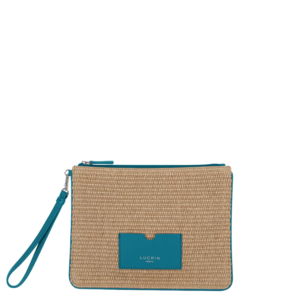 Pensata per la stagione più calda, la pochette in rafia per l’estate nel formato grande unisce con armonia rafia intrecciata e finiture in pelle di alta qualità. Leggera e ben strutturata, è l’accessorio perfetto per portare con te tutto il necessario senza rinunciare al tuo stile unico. Il suo ampio formato con chiusura a zip consente di riporre telefono, occhiali da sole, agenda o crema solare. La morbida fodera in cotone protegge i tuoi effetti personali, mentre i profili in pelle conferiscono alla borsa carattere e robustezza. Portata a mano o all’interno di una tote bag, questa pochette femminile offre il perfetto equilibrio tra praticità e raffinatezza. Scegli il tipo di pelle e aggiungi le tue iniziai incise per creare un accessorio davvero unico.