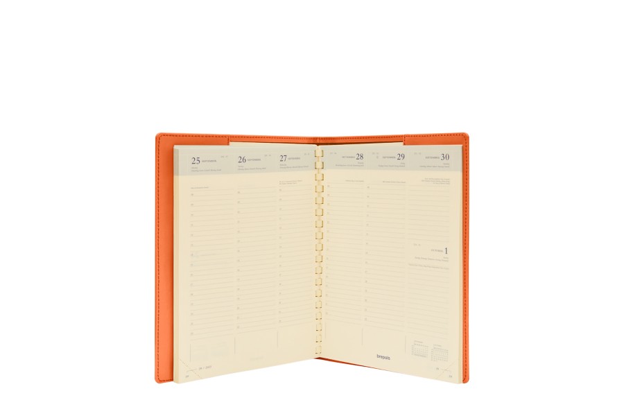 Agenda Tascabile Settimanale rimovibile in pelle. Venduta con agenda divisa secondo i giorni della settimana – una settimana su due pagine – con spirale di marca Brepols Timing.
