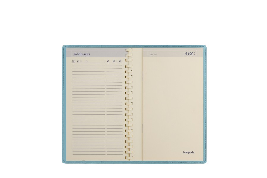 Agenda tascabile in pelle di vacchetta pieno fiore. Consegnata con un calendario settimanale completo Omniplan di Brepols, con spirale, una settimana su 2 pagine, una rubrica telefonica, planning e cartine mondiali. Nuovi ricambi venduti con il rif. ROS1012.