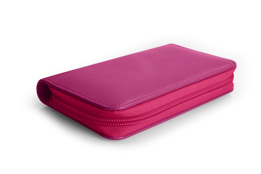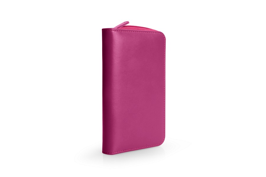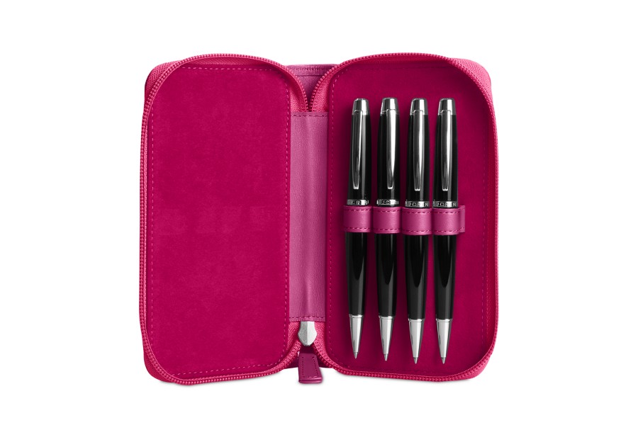 Astuccio porta 4 penna con zip - Fucsia - Pelle Liscia