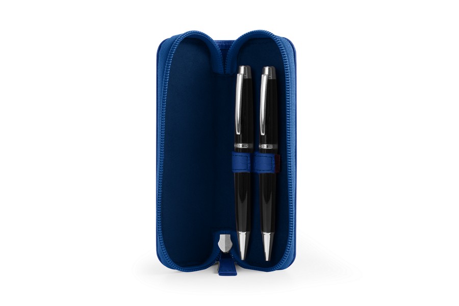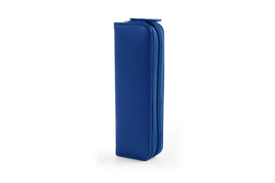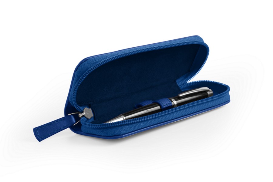 Astuccio portapenna con zip - Blu Reale - Pelle Liscia