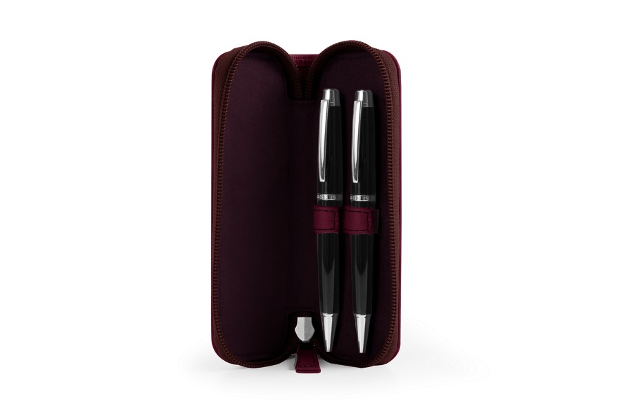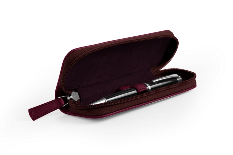 Astuccio portapenna con zip - Bordeaux - Pelle Liscia