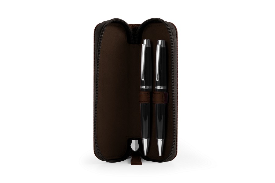 Astuccio 2 penna Zippé. Elegante astuccio per una stilografica, con zip. Patta interna regolabile per fissare la stilografica. Si adatta perfettamente a stilografiche grandi, medie e sottili. Lunghezza massima della stilografica: 14,5 cm. Stilografica non inclusa. Dimensioni chiuso: 6.5 x 17 x 2.5 cm.