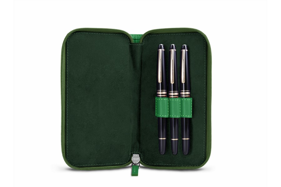 Astuccio 3 penna Zippé. Elegante astuccio per una stilografica, con zip. Patta interna regolabile per fissare la stilografica. Si adatta perfettamente a stilografiche grandi, medie e sottili. Lunghezza massima della stilografica: 14,5 cm. Stilografica non inclusa.Dimensioni chiuso: 8 x 17 x 2.5cm.