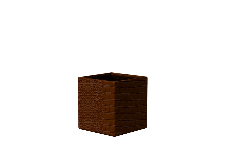 Quodrato portapenne - Camello - Pelle imitazione coccodrillo