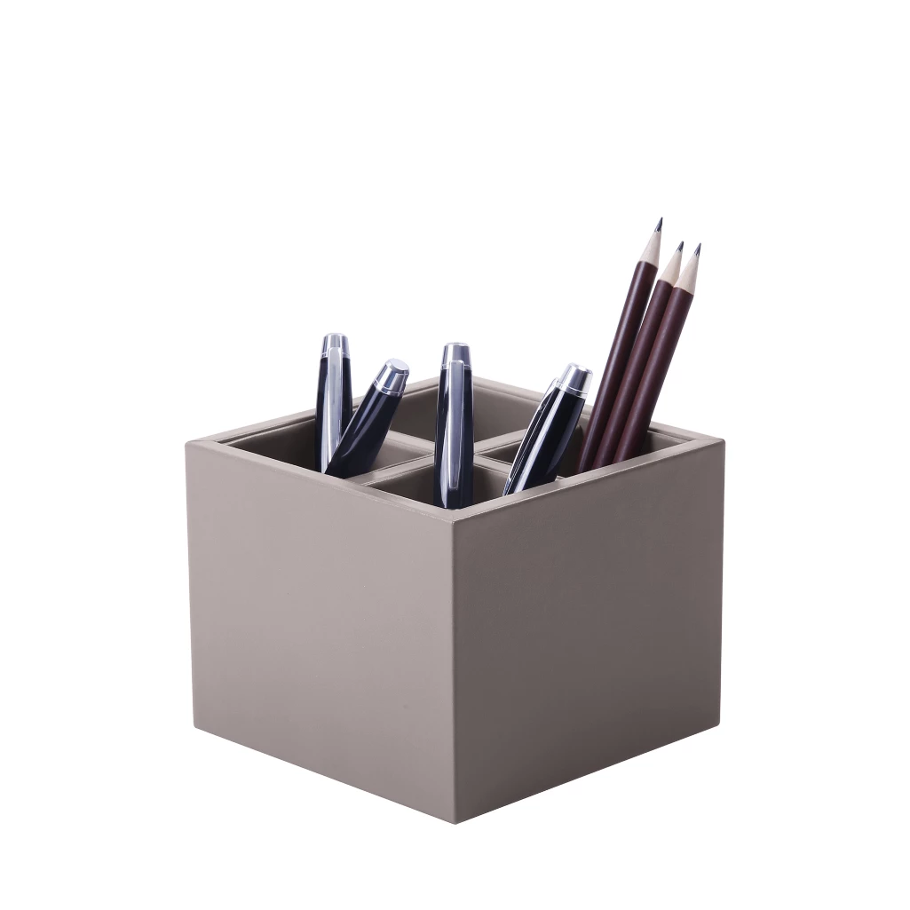 Scopri il portapenne in formato grande, dedicato a chi apprezza l’organizzazione prima di tutto. Realizzato a mano dai nostri artigiani con una solida base in legno e un rivestimento in lussuosa pelle premium, questo porta penne presenta 4 scomparti che ti consentono di riporre i tuoi strumenti di scrittura e tenere in ordine la scrivania. Personalizza il colore per un’estetica coordinata all’arredo del tuo ufficio.