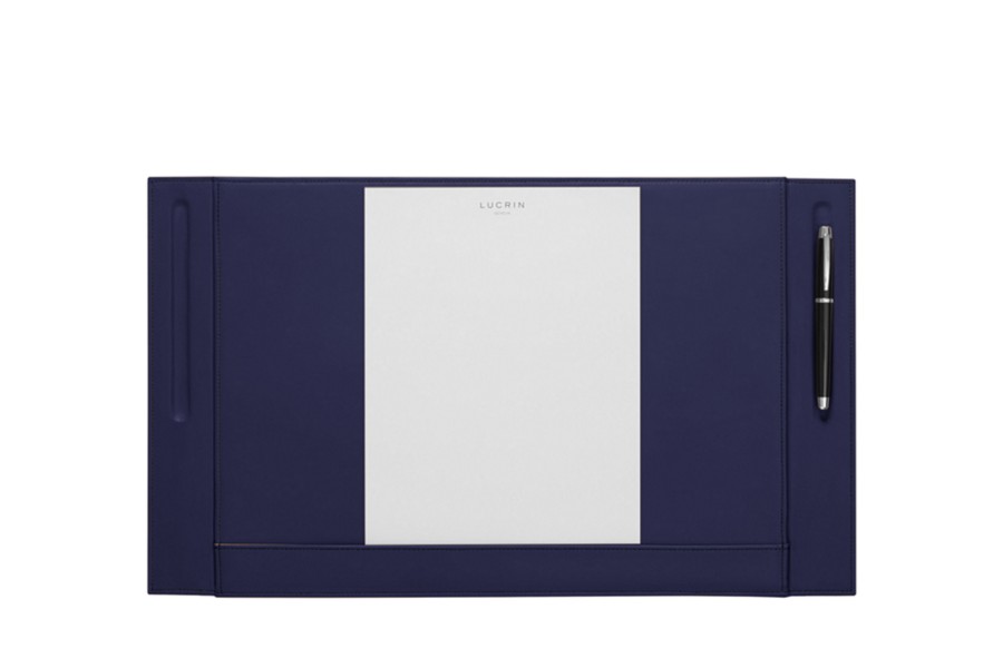 Sottomano con 2 portapenne - Blu Navy - Pelle Liscia