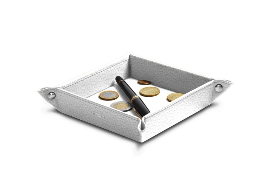 Piccolo Svuotatasche quadrato (12 x 12 x 3 cm) - Bianco - Pelle Ruvida