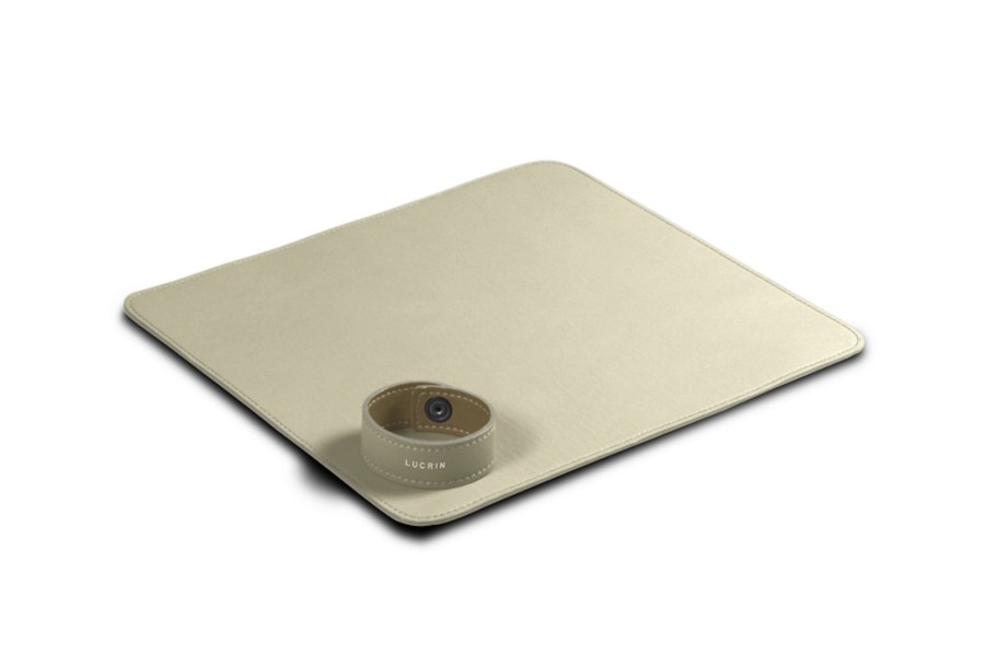 Realizzato con vera pelle soffice, questo tappetino per mouse è l'ideale per coloro che scelgono di usare un mouse piuttosto che un tablet con pennino. La morbidezza della pelle ti permette di arrotolarlo in modo da poterlo portare, per esempio, in valigia durante i viaggi. Questo morbido tappetino viene mantenuto arrotolato grazie ad una chinghia con chiusura a bottone. La parte inferiore del tappetino è realizzata con un materiale di finta pelle che aderisce perfettamente alla superficie. Questo oggetto, essendo in pelle, può anche essere utilizzato come decorazione.