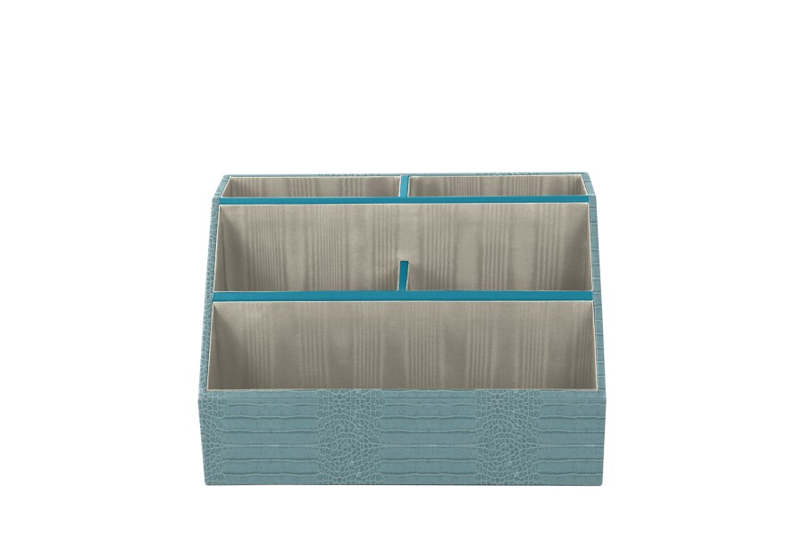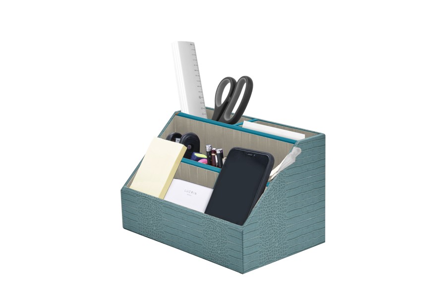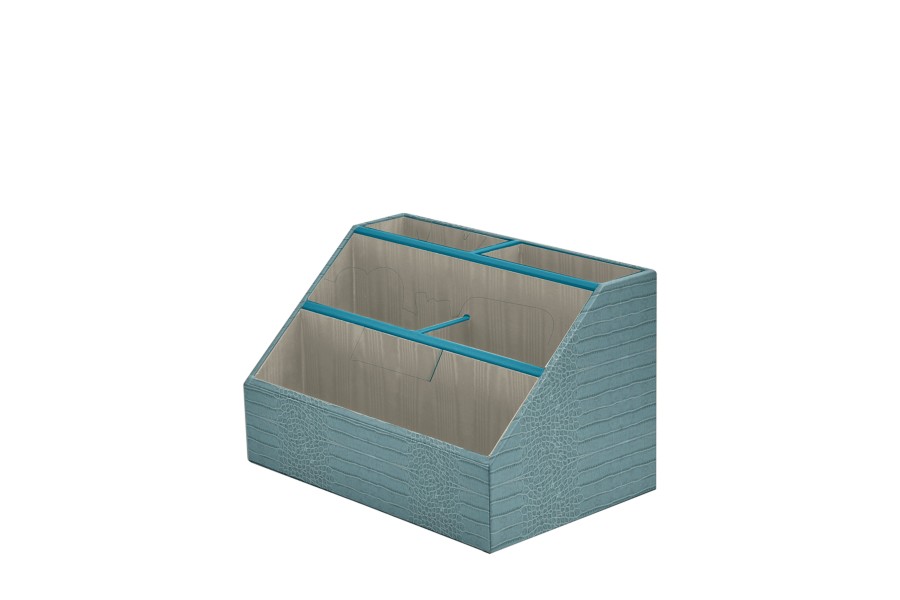 Portaoggetti da scrivania - Turchese - Pelle imitazione coccodrillo