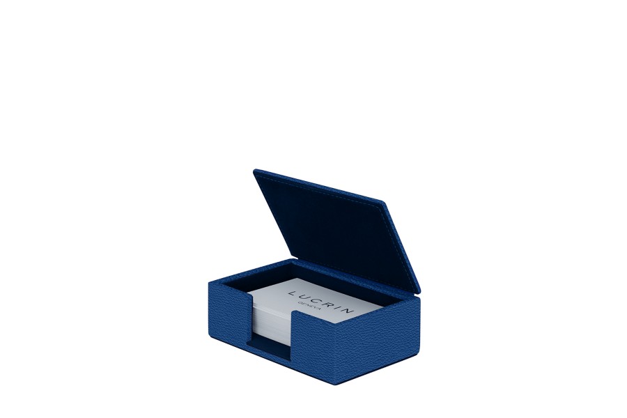 Scatola per biglietti da visita - Blu Reale - Pelle Ruvida