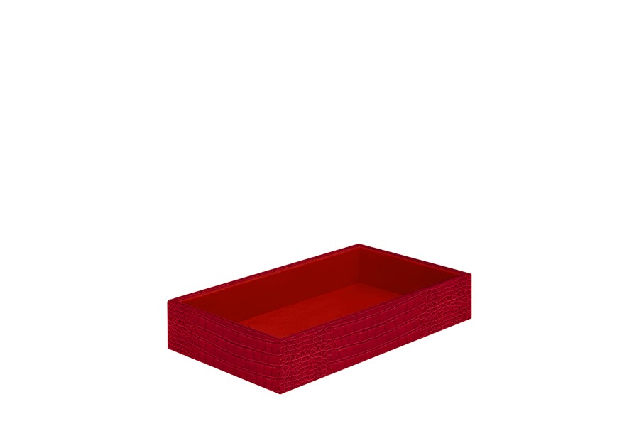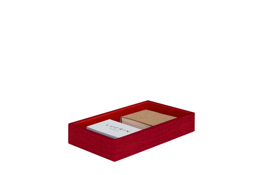 Scatola portaoggetti (11 x 20 x 3,5 cm) - Rosso - Pelle imitazione coccodrillo