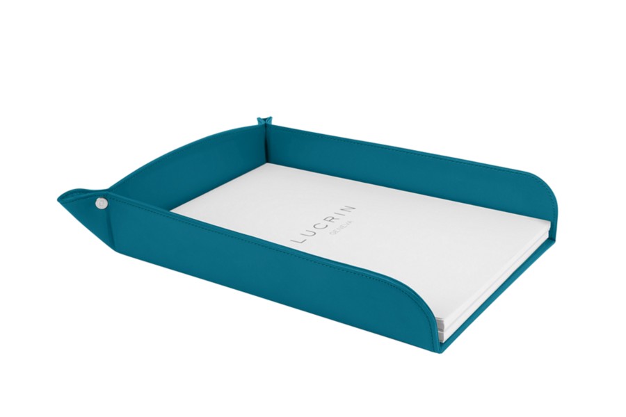 Vassoio porta-carta A4 - Turchese - Pelle Liscia