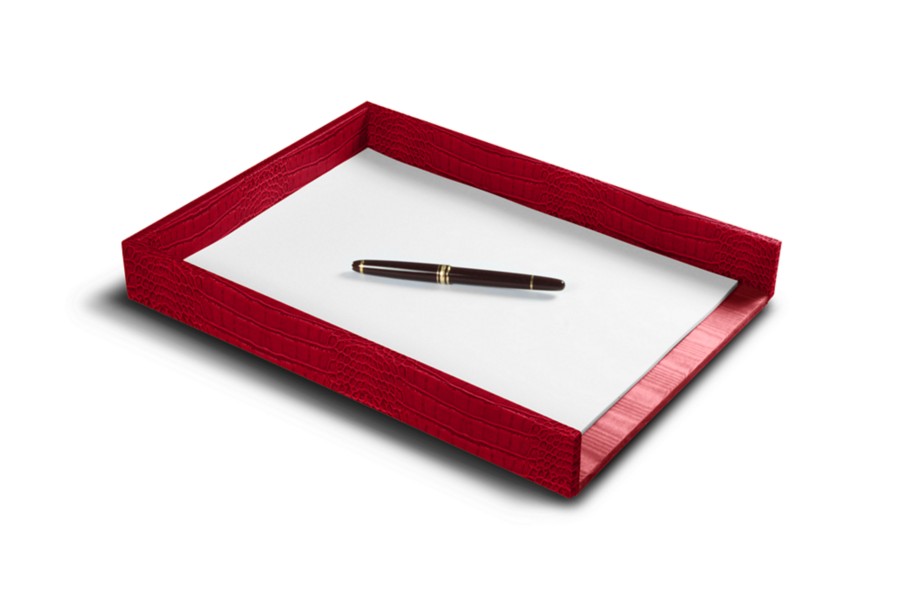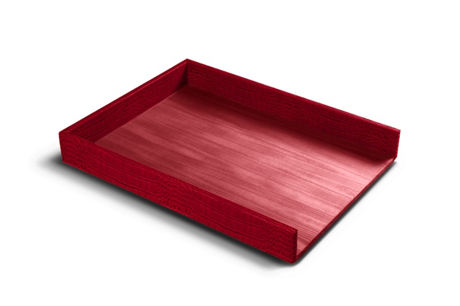 Vaschetta porta fogli A4 - Rosso - Pelle imitazione coccodrillo