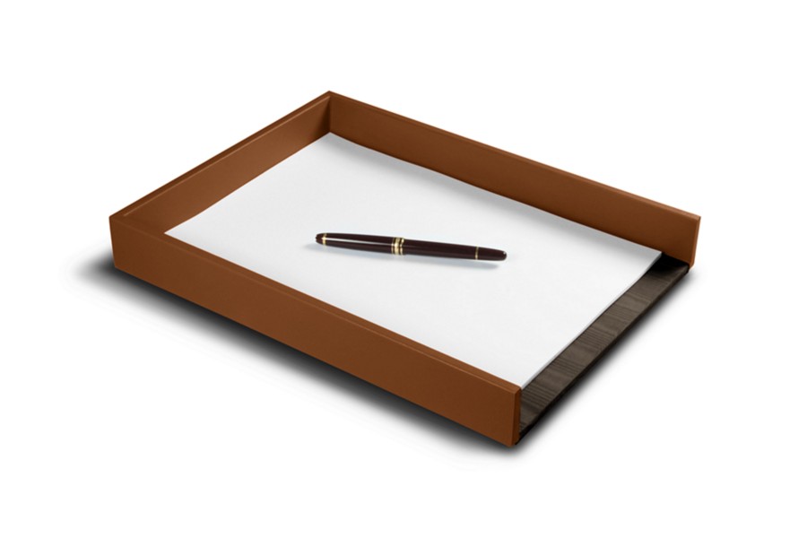 La vaschetta porta fogli A4 di Lucrin è sostanzialmente una vaschetta di legno coperta di vera pelle. La superficie interna è rivestita con tessuto. Se state cercando un accessorio per ufficio che vi aiuti ad organizzare i vostri documenti e le vostre lettere, potere posizionare diversi di questi porta carte in pelle uno sull'altro. In questo modo si formeranno una sorta di cassetti di pelle dove potete conservare i vostri documenti. Inoltre, grazie all'incredibile varietà di colori proposti da Lucrin, è possibile abbinare il colore di questa vaschetta all'arredamento generale del vostro ufficio. Potrete perfino completare il vostro ordine formando un set da scrivania completamente in pelle ordinado, per esempio, un tappetino da scrivania e un porta penne.